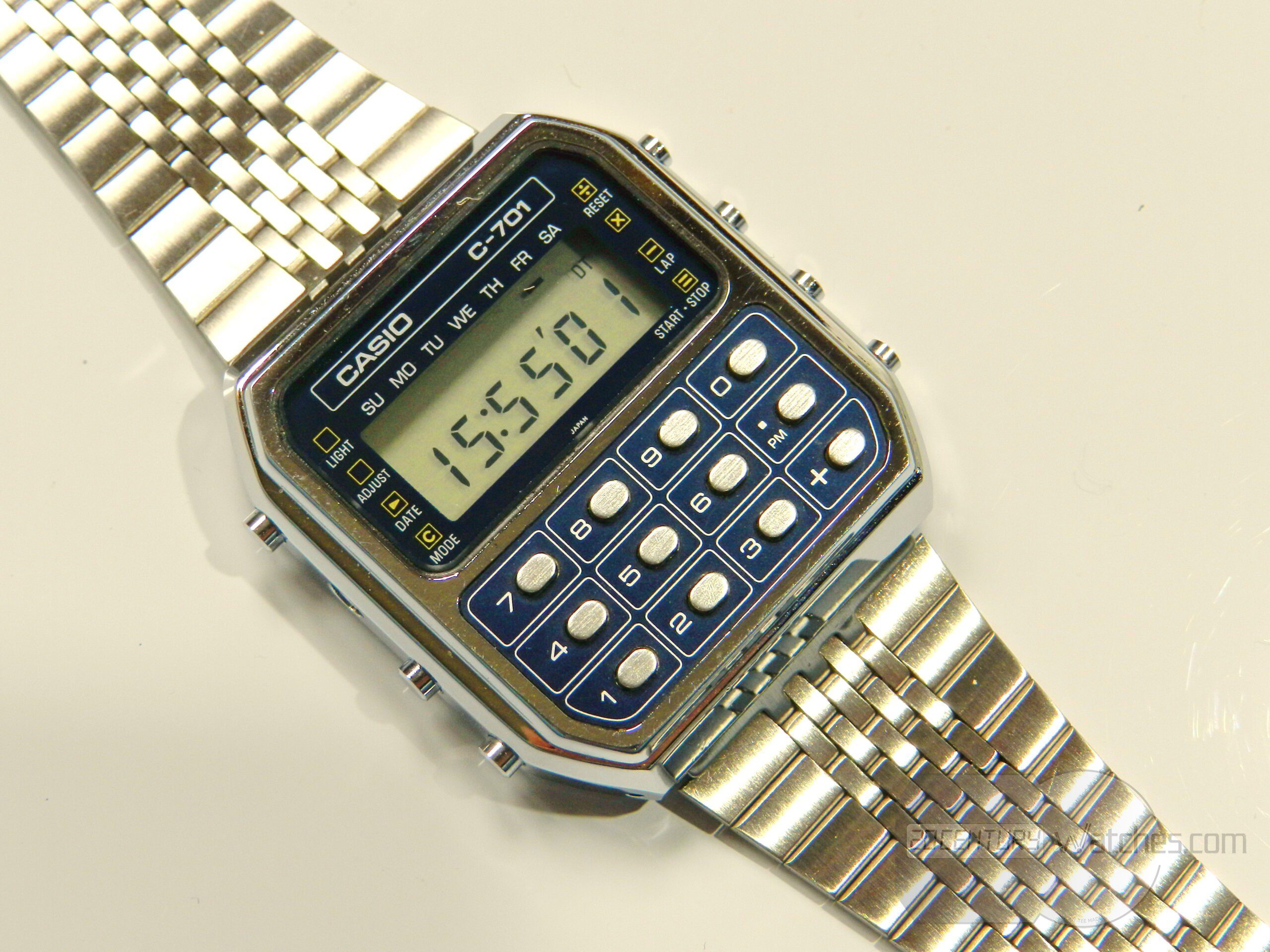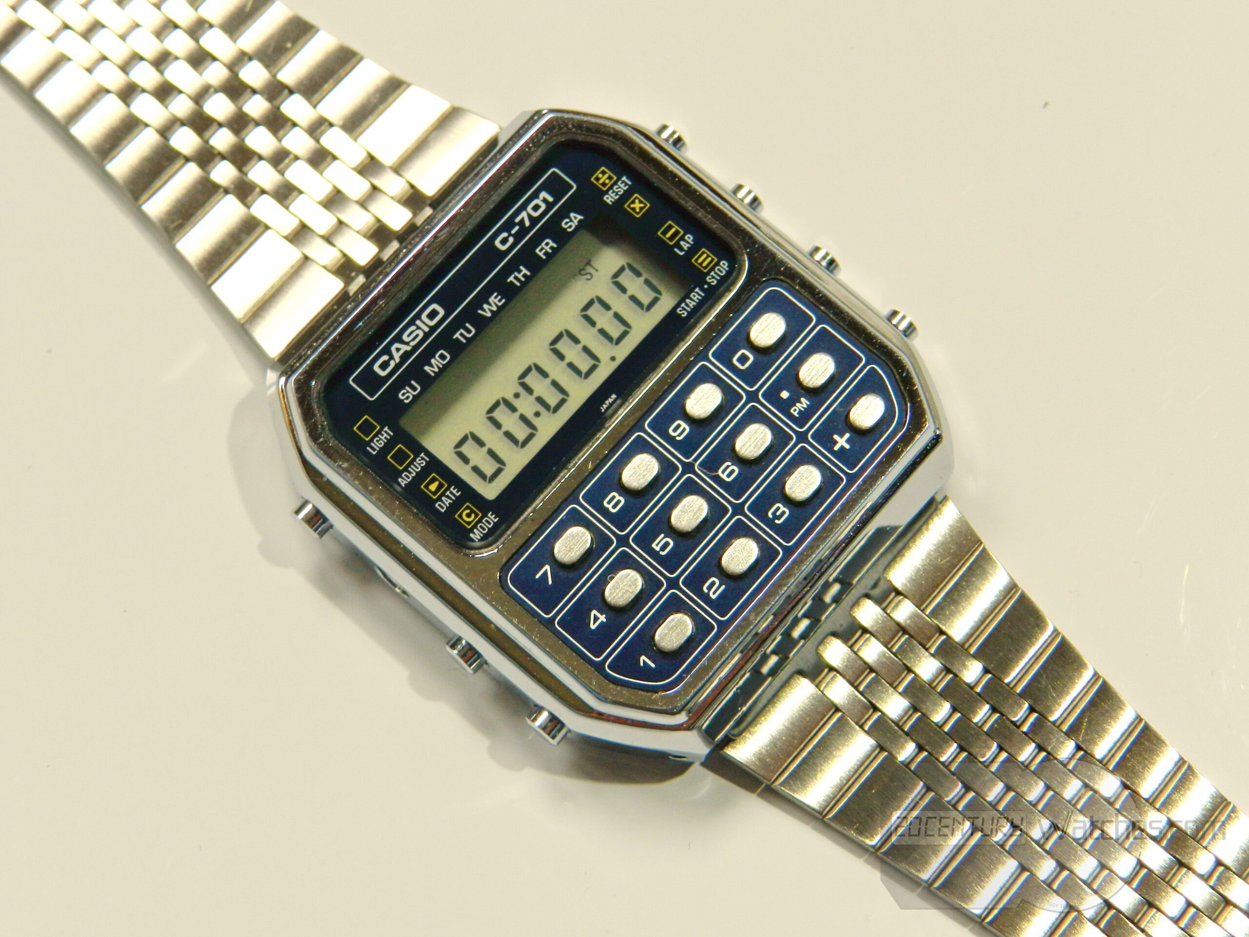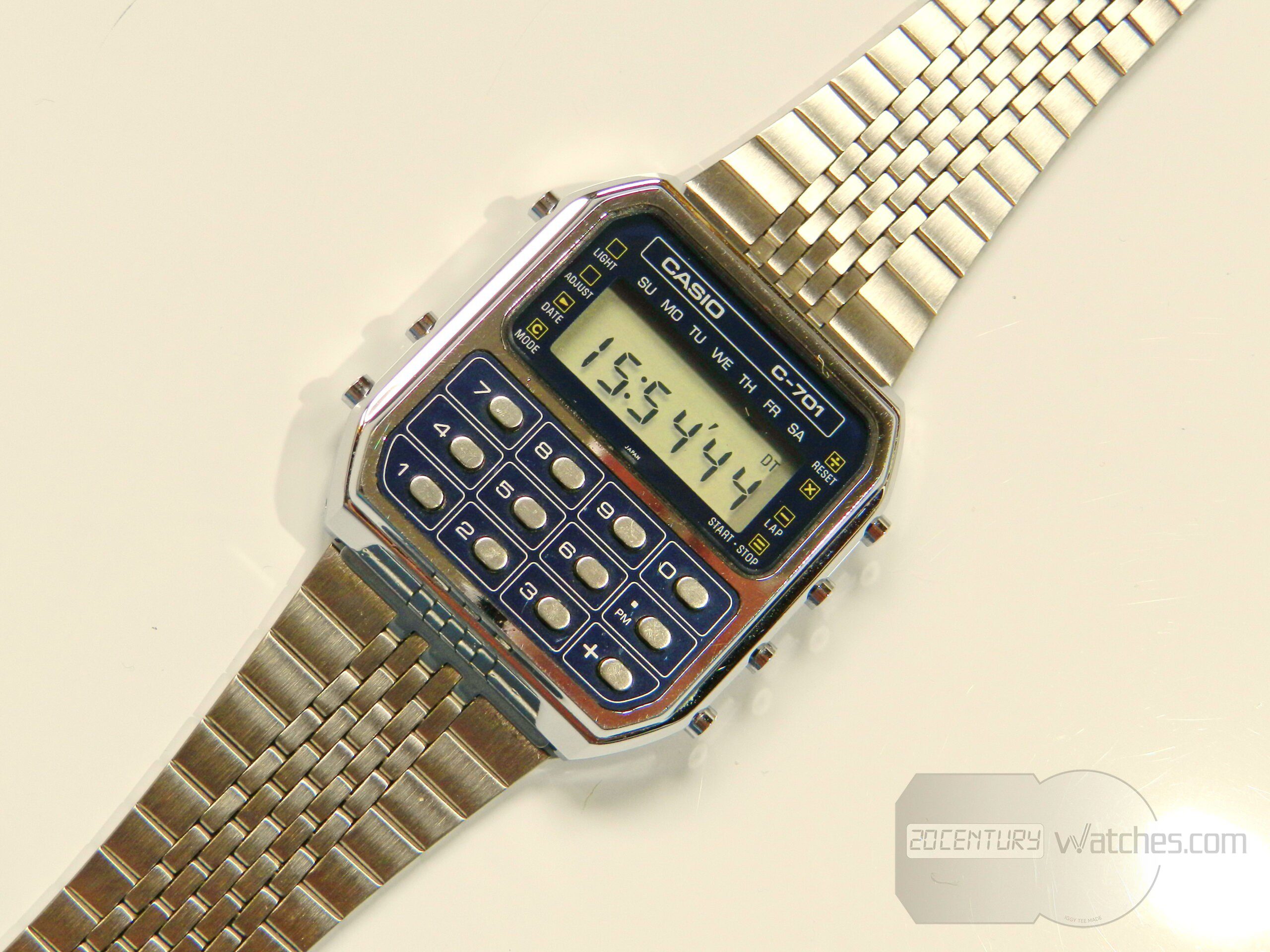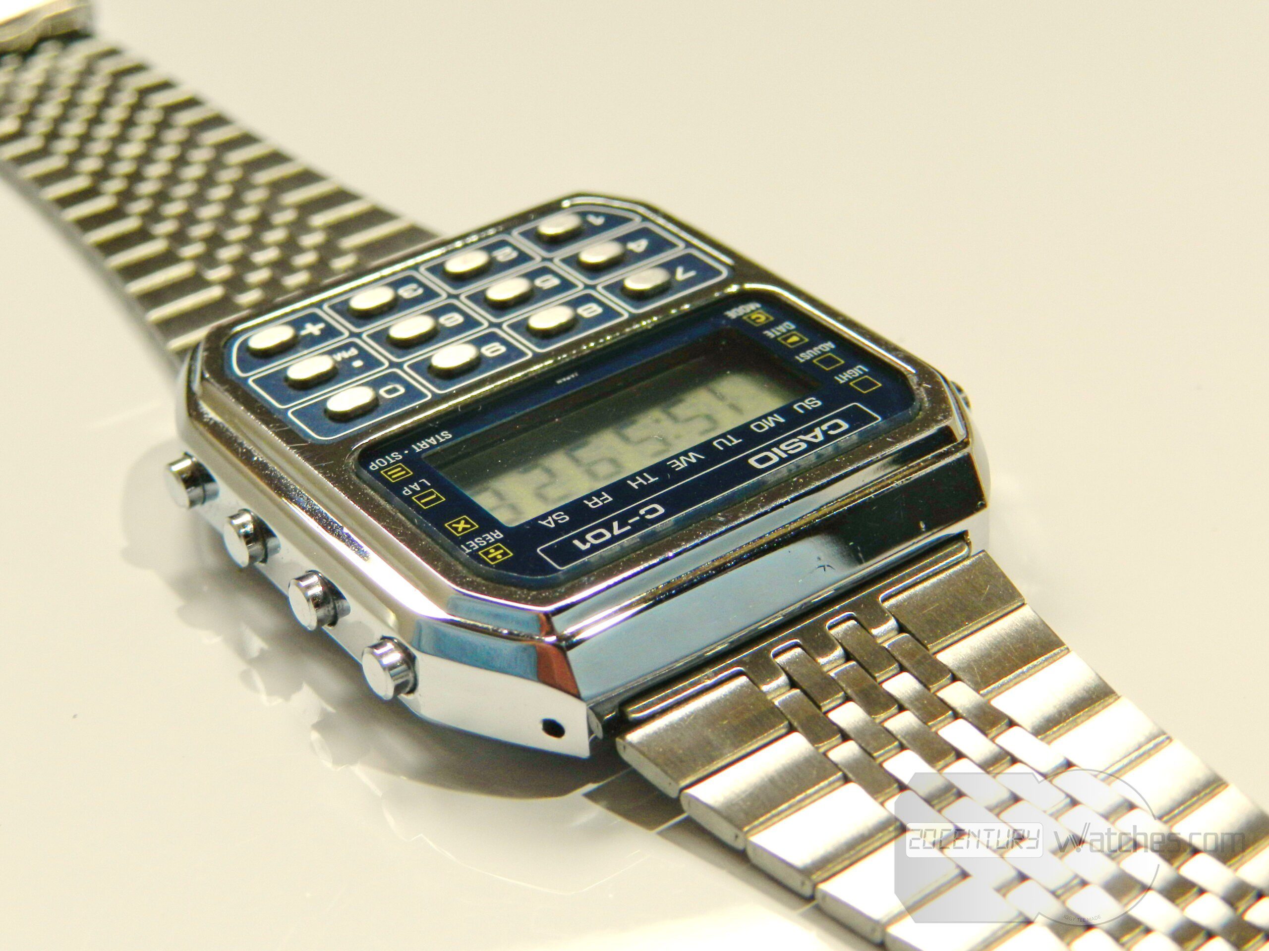 First vintage Casio calculator watch c-701 (module 133). In this preserved condition it is difficult to see and find, the watch has minimal, almost invisible to the naked eye, small traces from storage, it is in perfect condition.