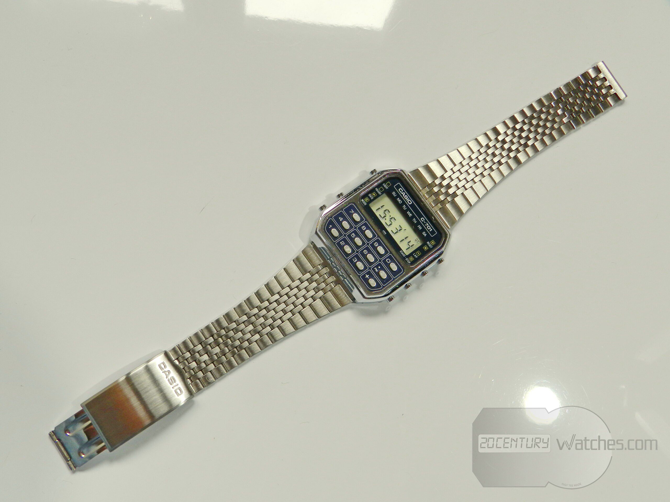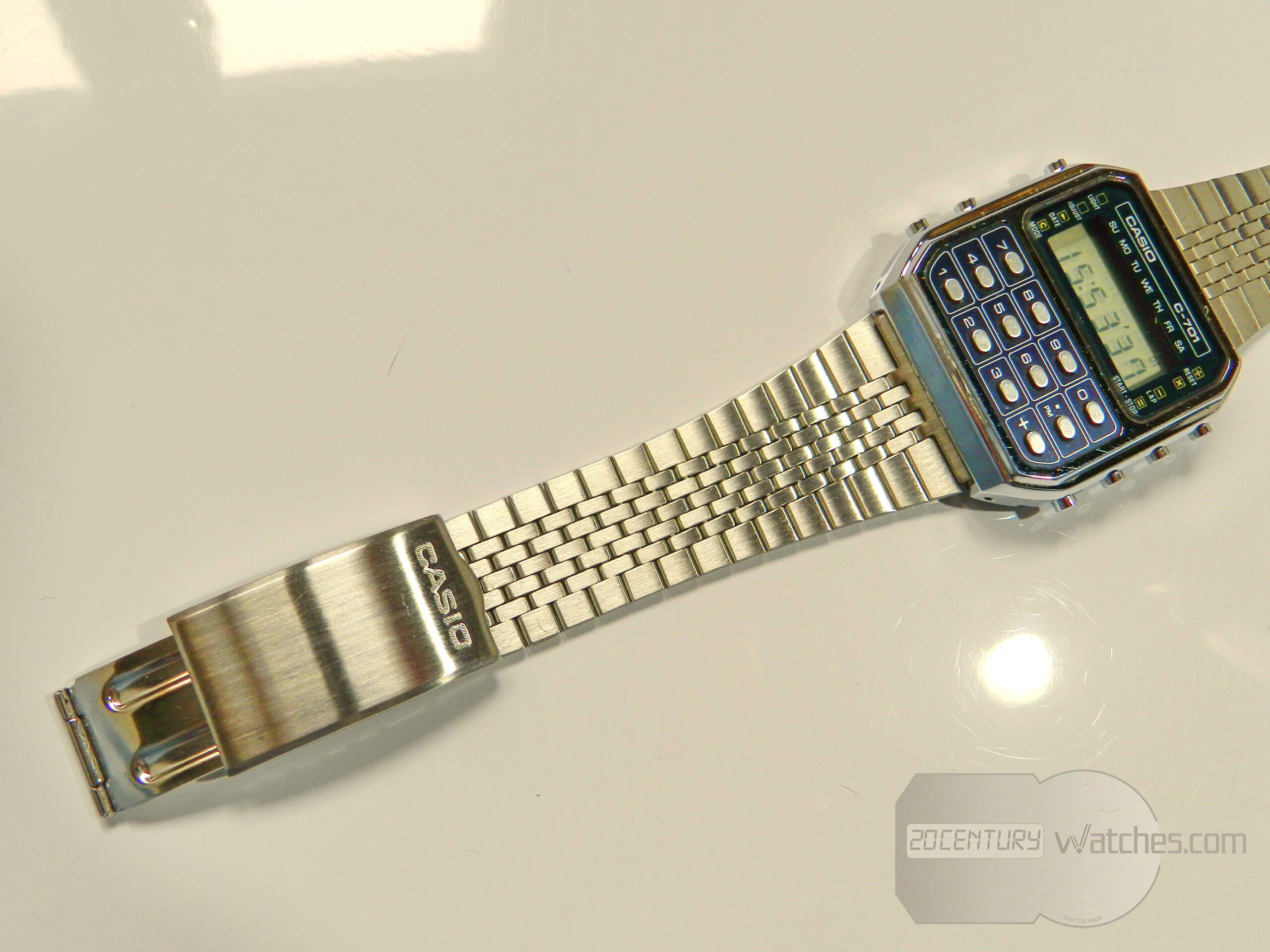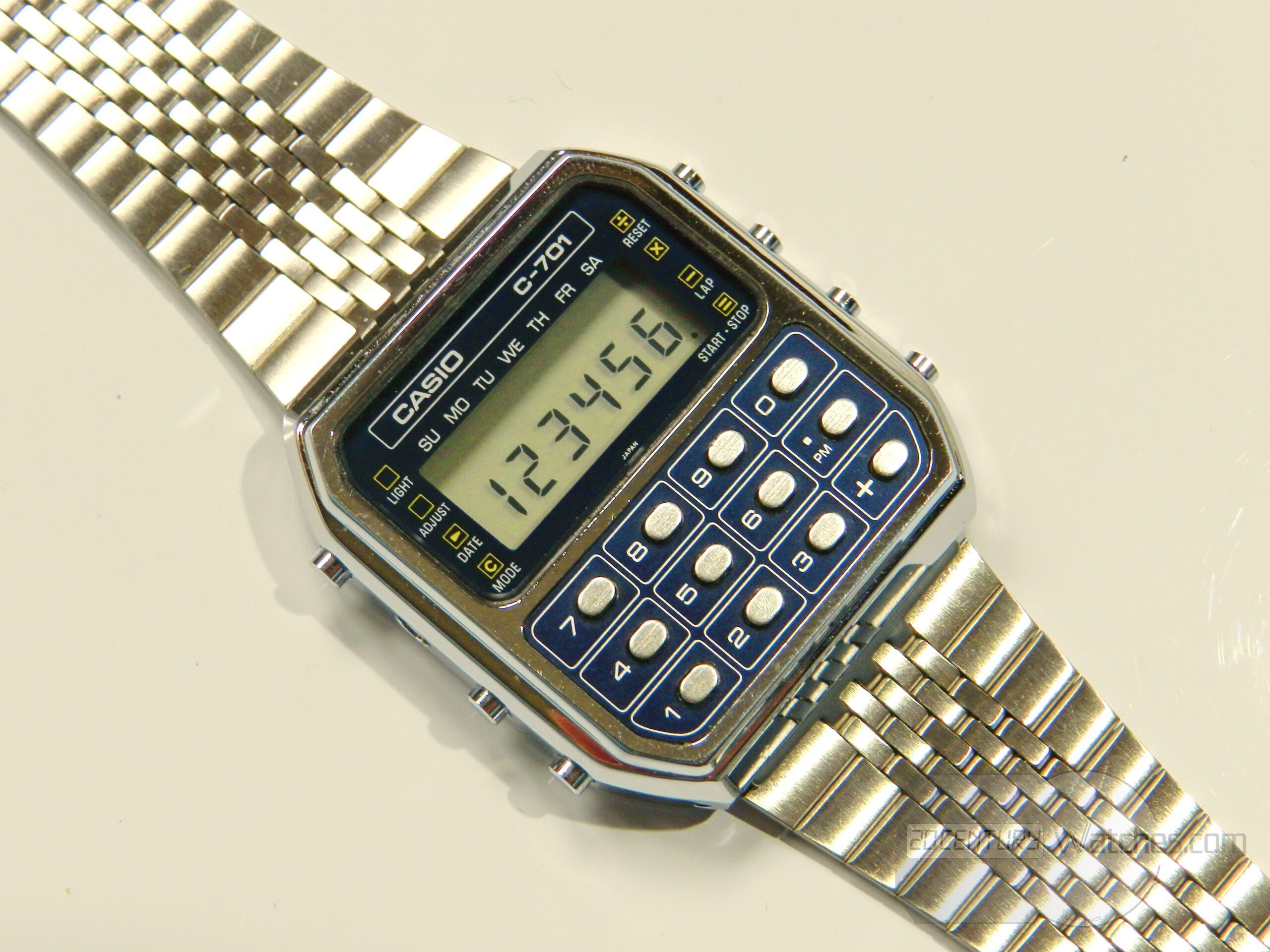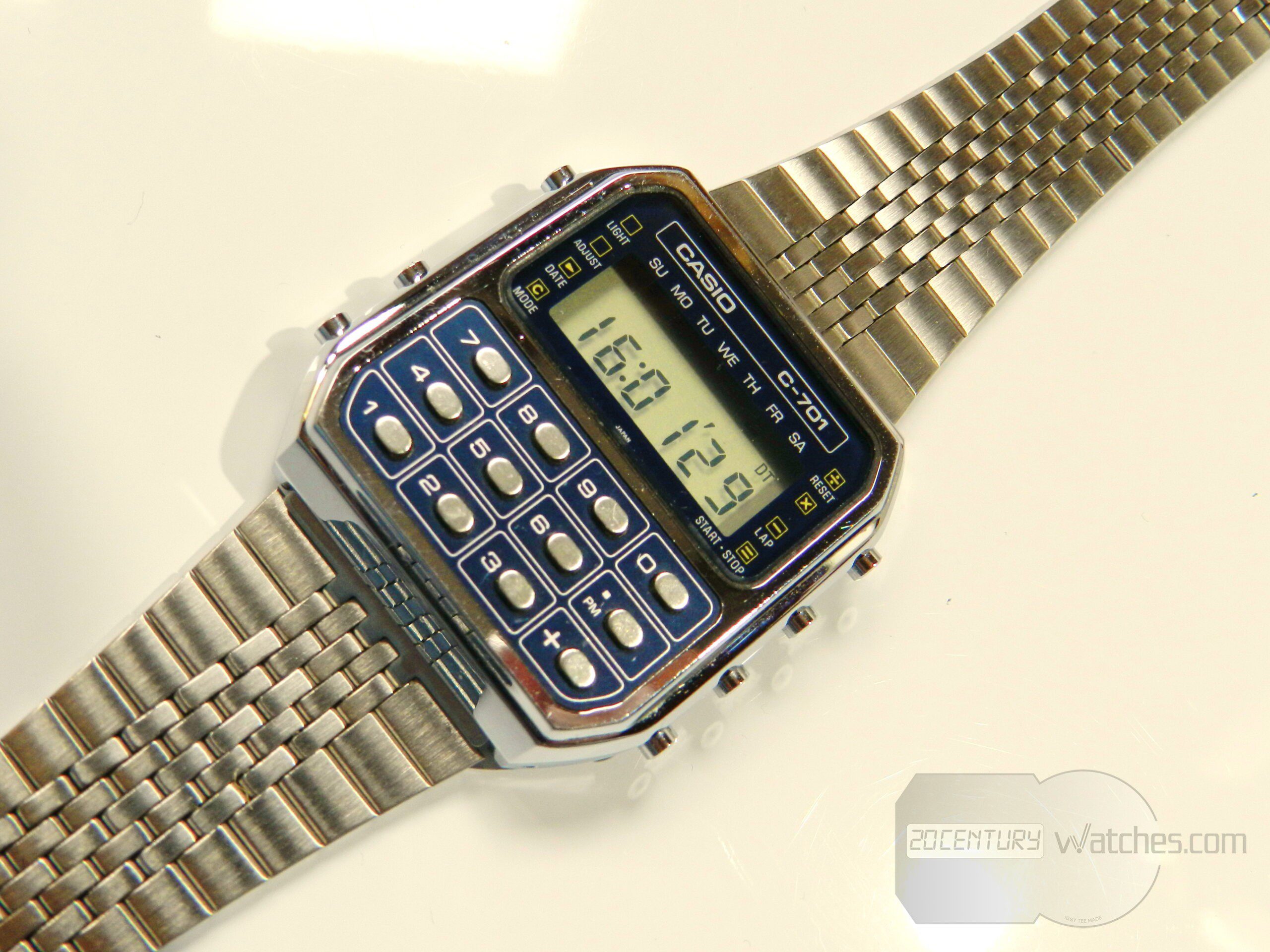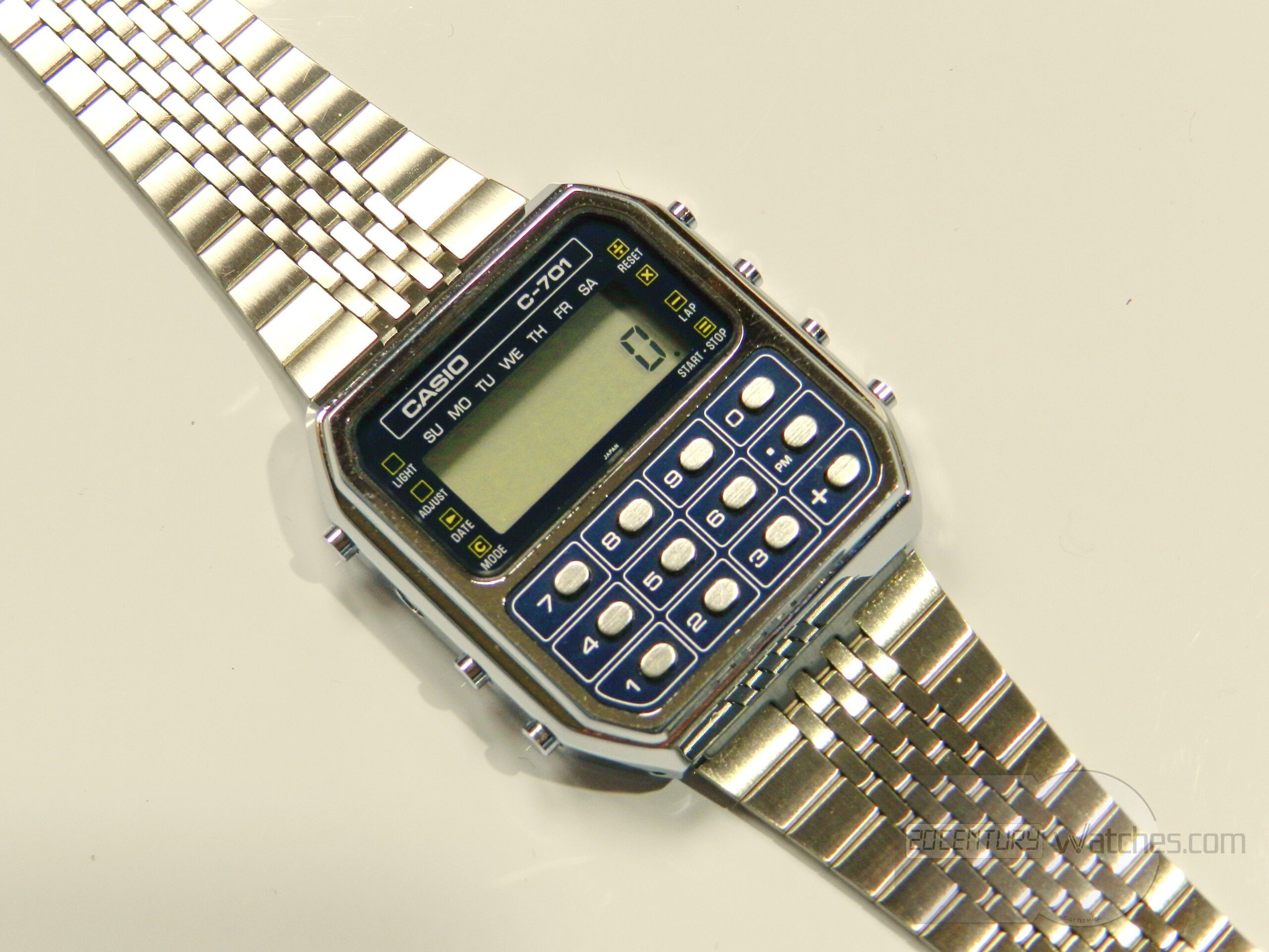 First vintage Casio calculator watch c-701 (module 133). In this preserved condition it is difficult to see and find, the watch has minimal, almost invisible to the naked eye, small traces from storage, it is in perfect condition.
