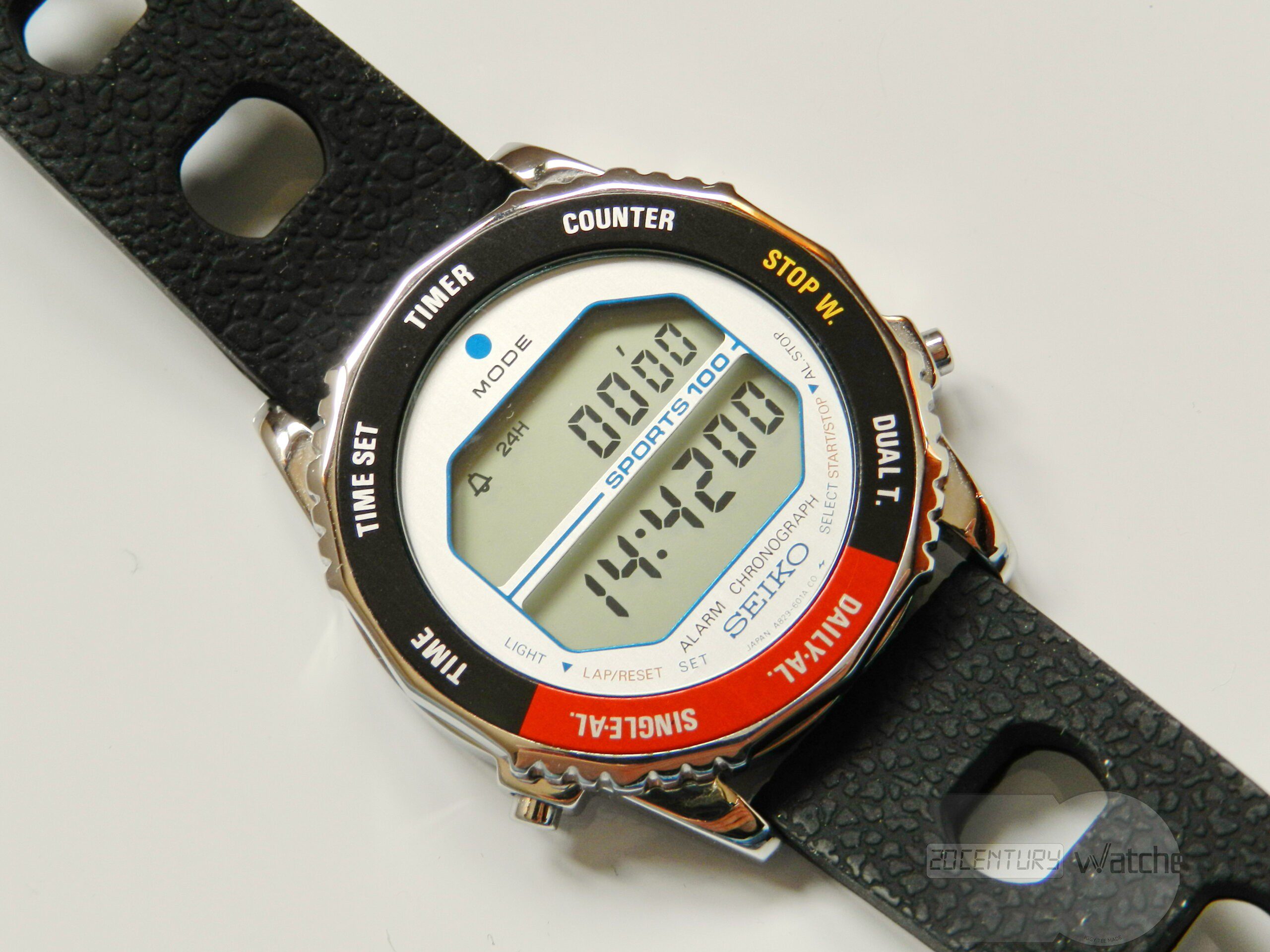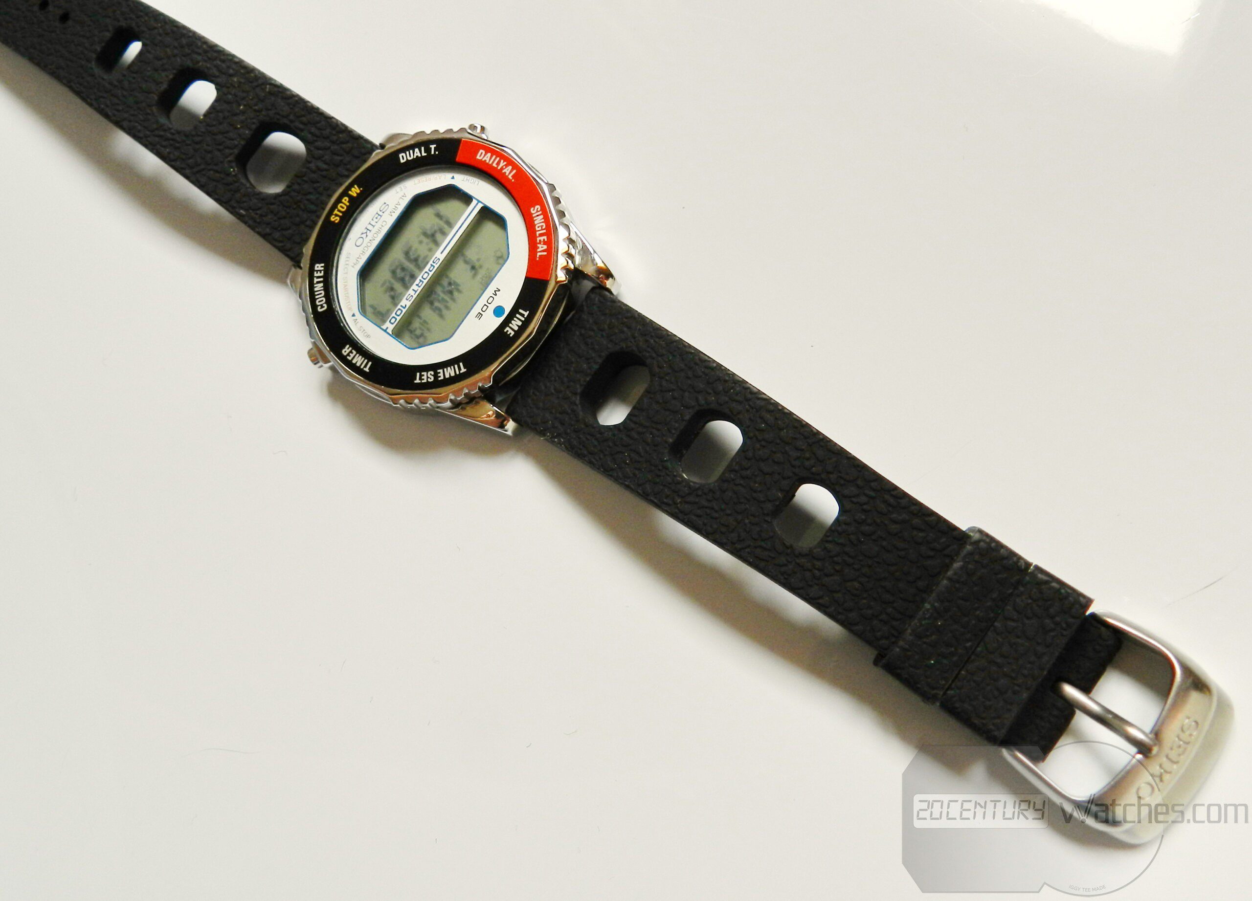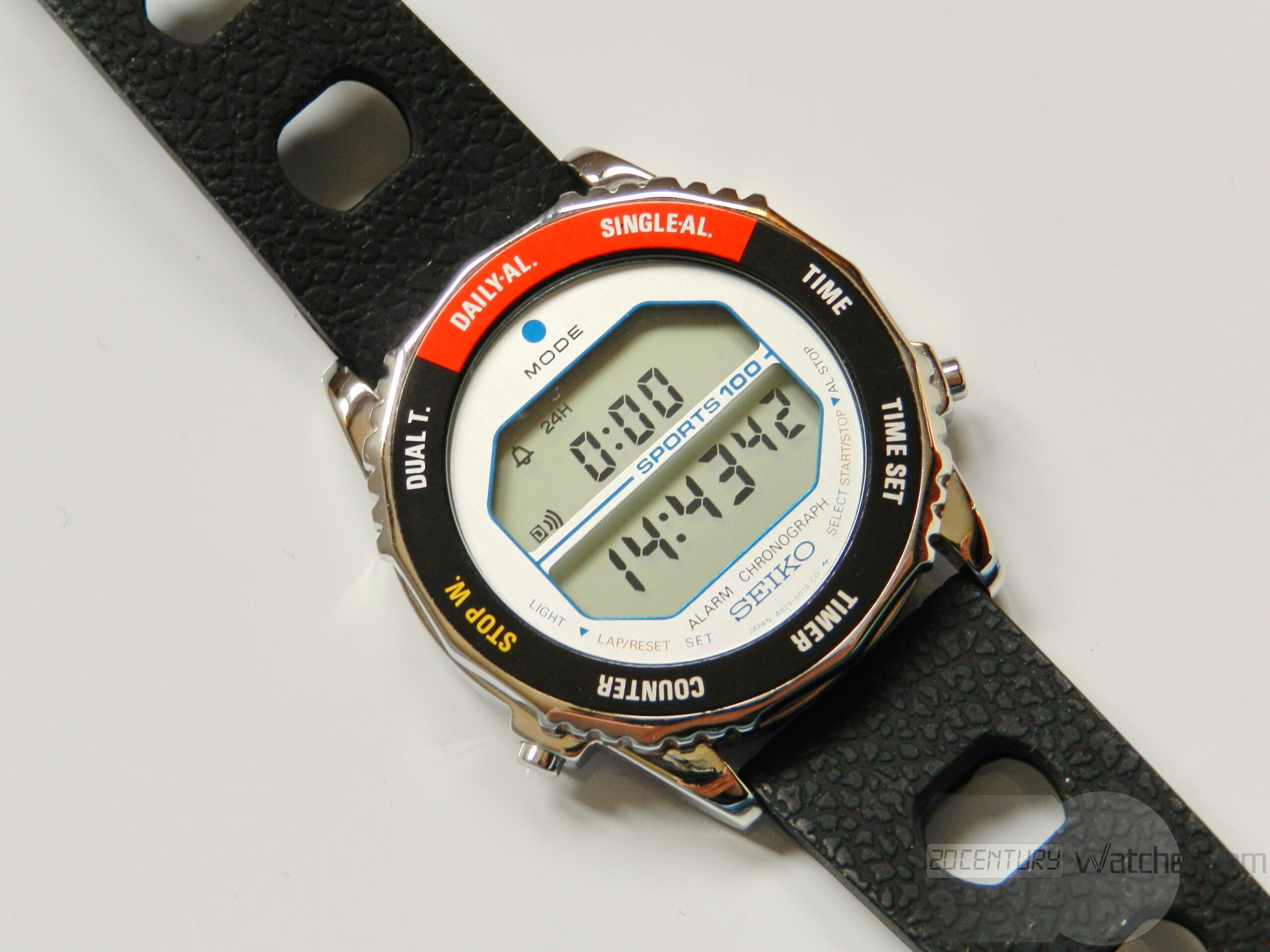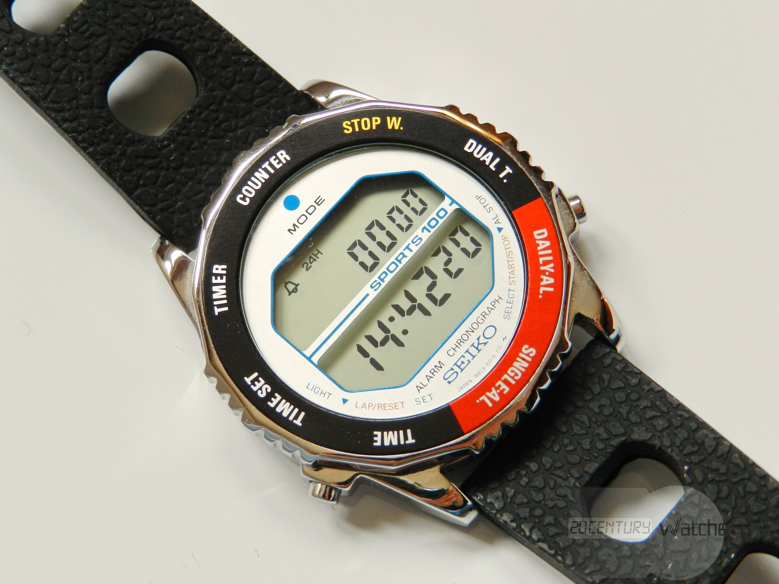 The one I’m presenting to you was manufactured in October 1982 and is a rarer version because it has a round bezel, much more common models have an octagonal bezel. This watch had an original rubber strap that was breaking into small pieces because the rubber had rotted over the years, so I put this one on and it fits perfectly. By turning the bezel you select the function you want and that’s why the watch is called Rotocall, a fantastic innovation by Seiko engineers to incorporate a rotating bezel into an LCD watch. In 2025, Seiko released a reissue of this classic.