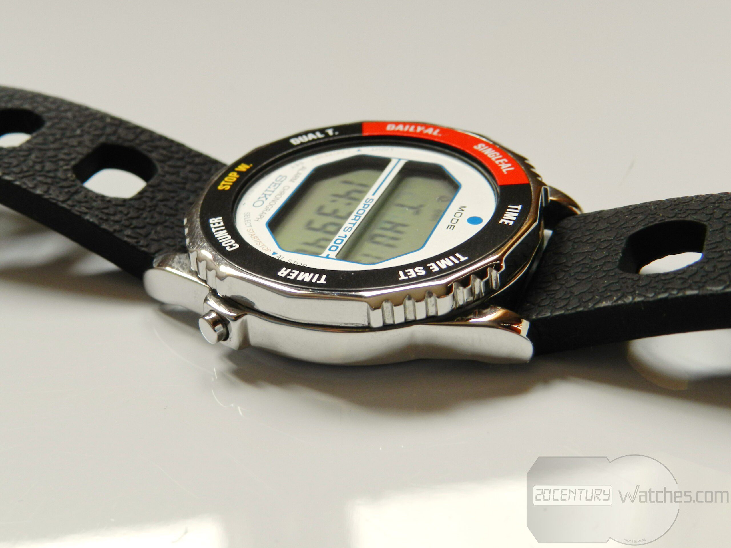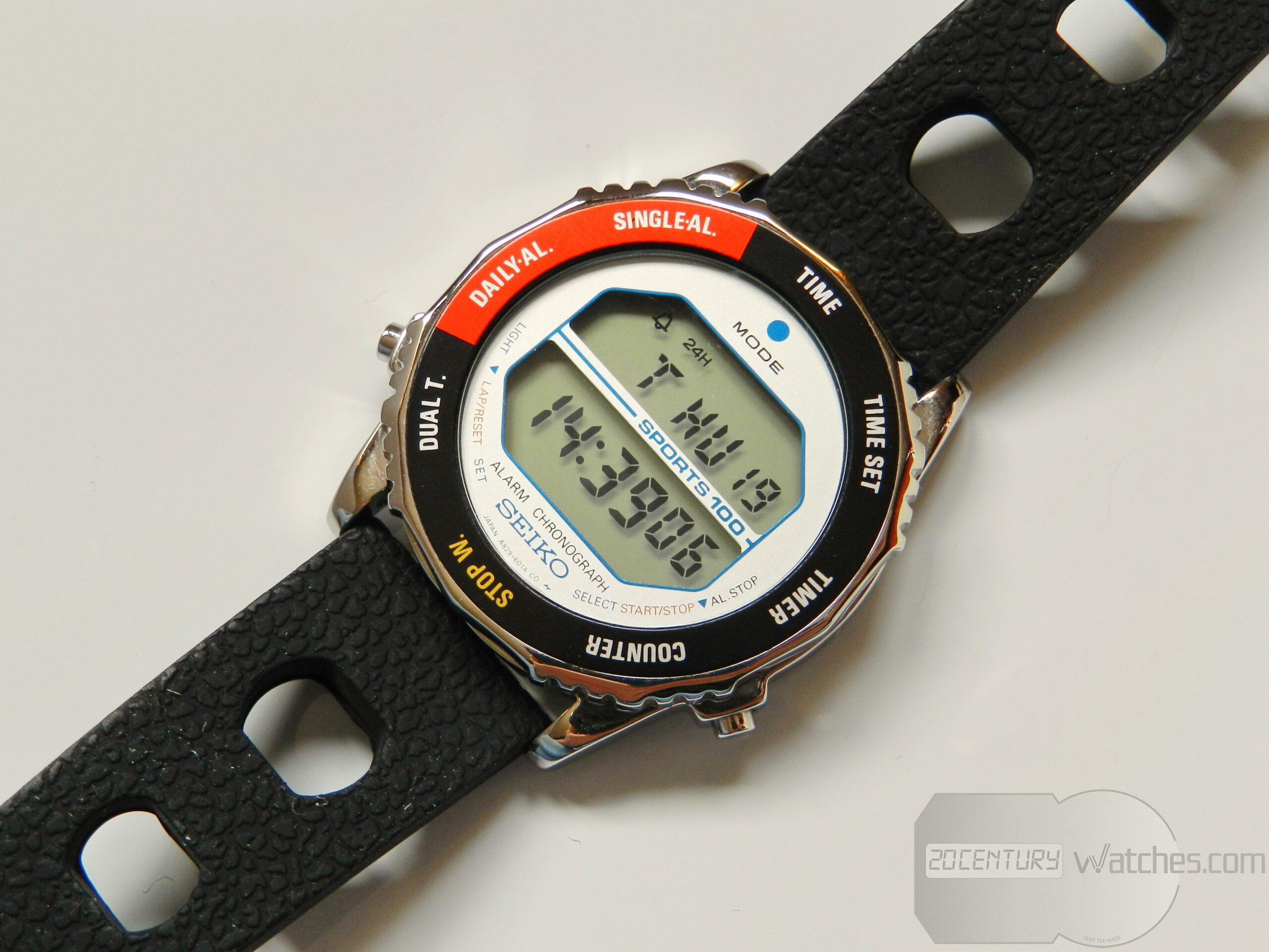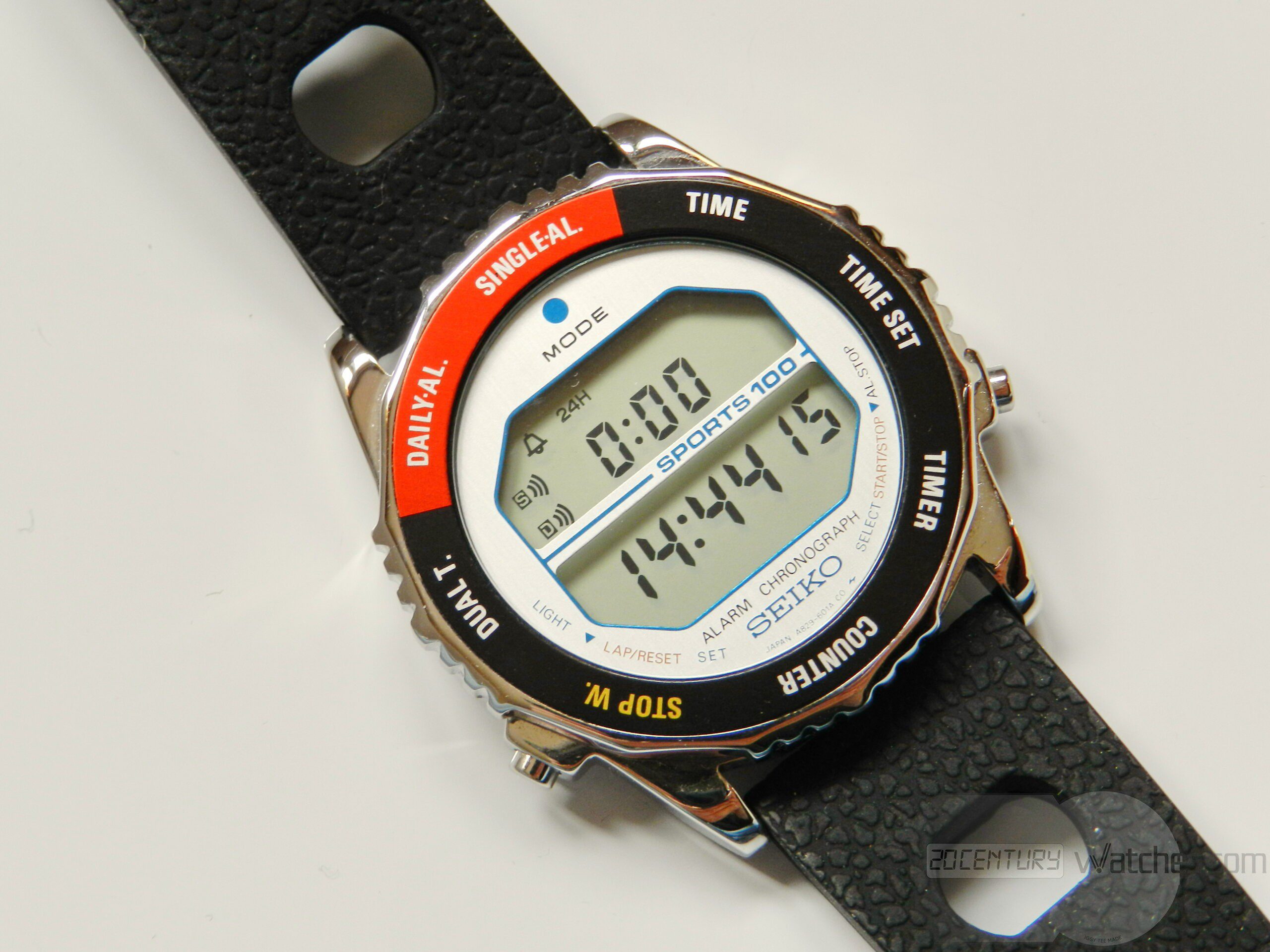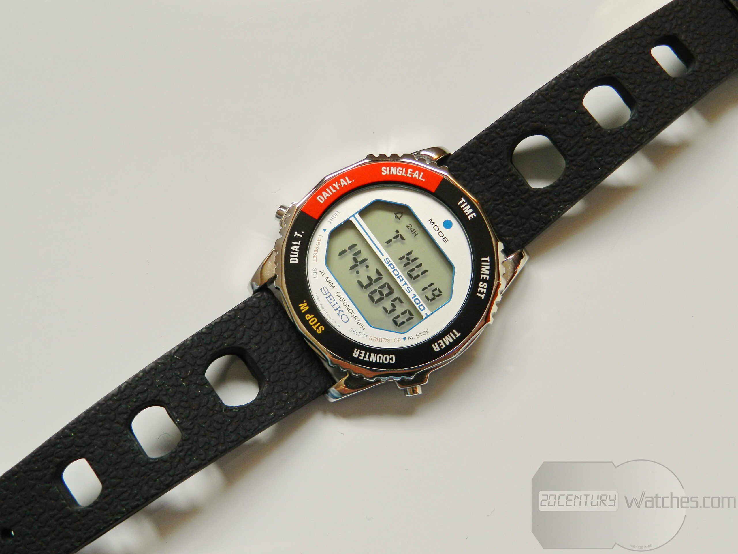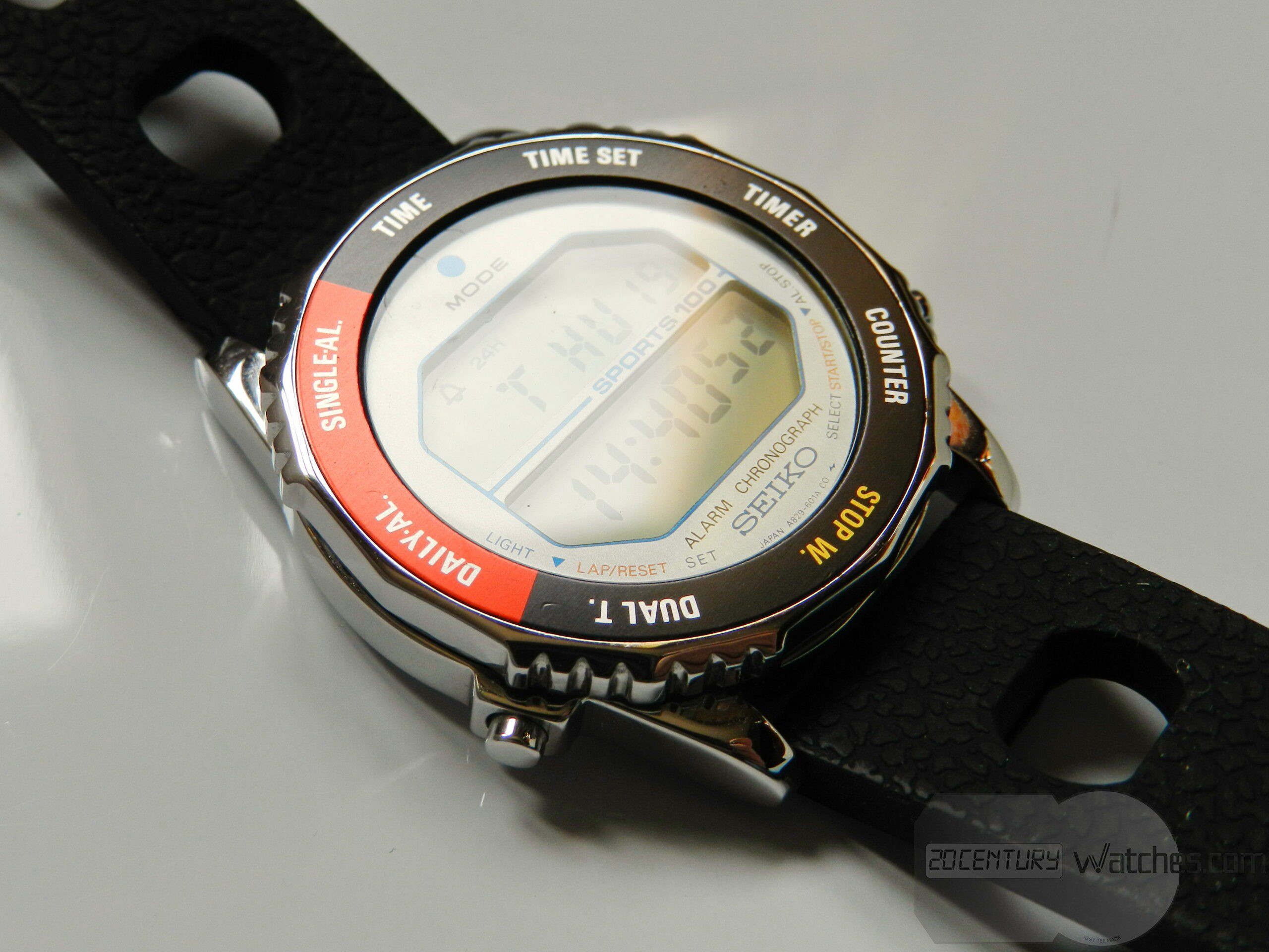 The one I’m presenting to you was manufactured in October 1982 and is a rarer version because it has a round bezel, much more common models have an octagonal bezel. This watch had an original rubber strap that was breaking into small pieces because the rubber had rotted over the years, so I put this one on and it fits perfectly. By turning the bezel you select the function you want and that’s why the watch is called Rotocall, a fantastic innovation by Seiko engineers to incorporate a rotating bezel into an LCD watch. In 2025, Seiko released a reissue of this classic.